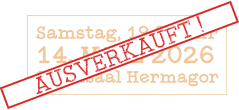Eintrittskarten aller Art können nicht zurückgenommen werden. Im Falle einer Absage des Konzertes erhält der/ die KäuferIn dieser Karte den Kaufpreis rückerstattet. Das Stornieren aus anderen Gründen ist nicht möglich. Termin-, Programm- und Besetzungsänderungen bleiben vorbehalten und berechtigen nicht zur Rückgabe oder zum Umtausch. Bitte die Beginnzeit einzuhalten und rechtzeitig zum Konzert zu erscheinen.